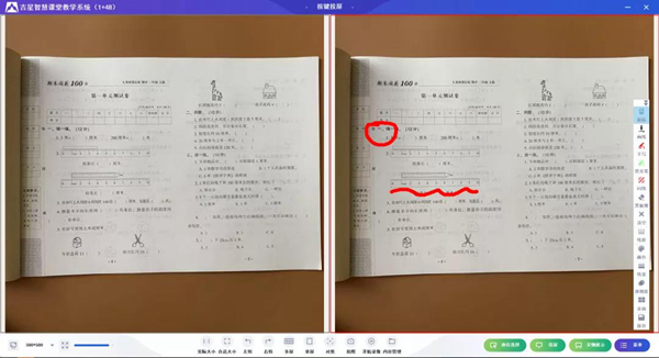 同時,也可實現(xiàn)原始作業(yè)和修改作業(yè)的對比,使用對比教學功能,即可在大屏展示學生原始作業(yè)和點評后的修改作業(yè)。讓學生更直觀地看到作業(yè)在哪些地方修改了,引導學生思考修改的原因和產(chǎn)生的效果。