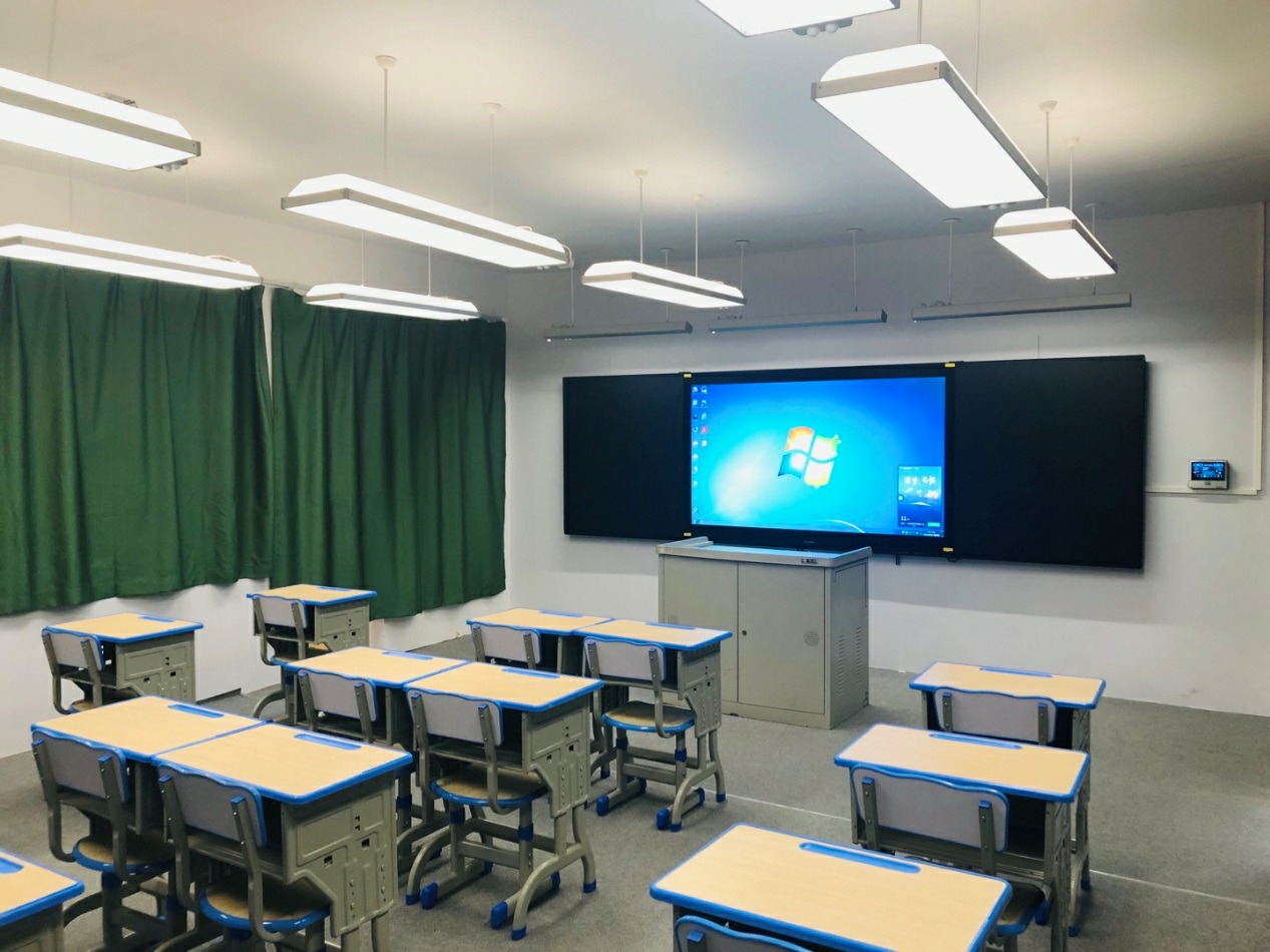 優(yōu)視春全護眼調(diào)光燈,在優(yōu)視春全護眼普通燈基礎上,增加了調(diào)光控制器、調(diào)光軟件等設備。提供6種不同場景的照明模式:上課模式、多媒體模式、課間模式、自習模式、考試模式、放學模式,可一鍵調(diào)控。讀寫模式:教室燈光照度調(diào)節(jié)至300LX以上,黑板燈自動調(diào)節(jié)至500LX以上,健康護眼。課件模式:燈光調(diào)弱,便于學生課間休息。多媒體模式:教室燈光照度自動調(diào)節(jié)至50-100LX,黑板燈自動調(diào)節(jié)至50LX以下。該款產(chǎn)品也可以手動0-100%調(diào)節(jié)燈光強弱。