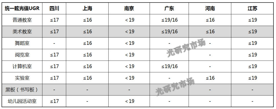 在統(tǒng)一眩光值方面,上海、河南要求為16以內(nèi),稍微高一些。南京、廣東和江蘇要求為19,等同國標(biāo)。廣東“期待”能做到16。