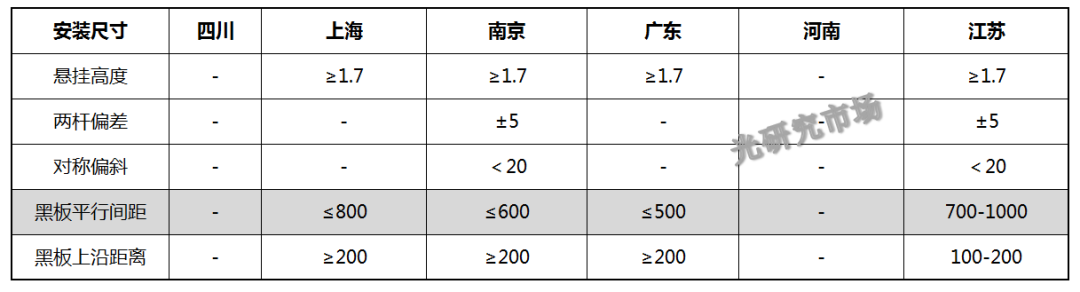 在安裝尺寸上,只有廣東對黑板平行間距的要求更為嚴(yán)苛,主要也是減少黑板燈對老師眼睛眩光造成的干擾。