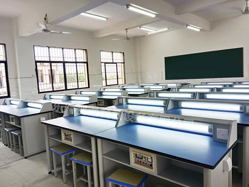 廣視通為大余縣新城中學(xué)規(guī)劃設(shè)計了物理綜合實驗室,化學(xué)實驗室,生物綜合實驗室,準(zhǔn)備室等場室,助力學(xué)校實驗室標(biāo)準(zhǔn)化建設(shè)。廣視通實驗室整體設(shè)計以教學(xué)為主,合理地利用空間布局,為日常理化生實驗室教學(xué)、實驗操作考評、公開課等提供了必要條件,有利于激發(fā)學(xué)生學(xué)習(xí)興趣,培養(yǎng)學(xué)生的動手能力和創(chuàng)新意識。