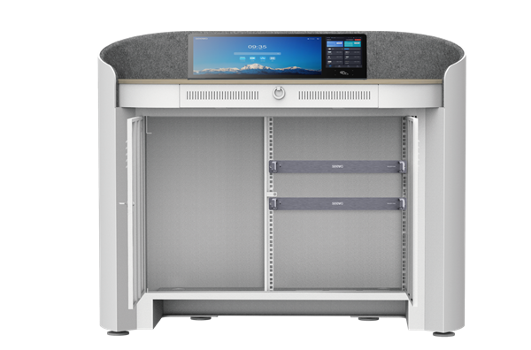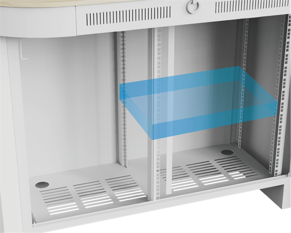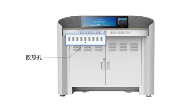 智能中控講臺TS03H標配12U標準機柜,更大容量滿足教室內各類控制終端收納,無需另設機柜,可存放電腦主機,布線方便,時刻保持講臺桌面干凈整潔,使教室環境更整潔美觀。