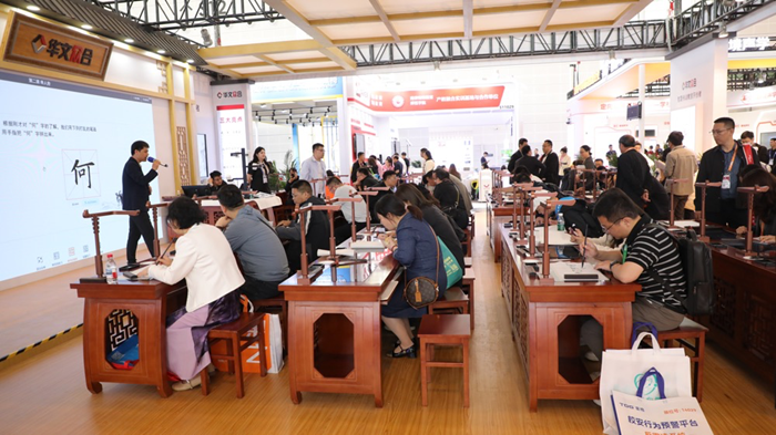 觀眾對華文眾合智慧書法充滿好奇與熱情,紛紛前來體驗(yàn)。現(xiàn)場書寫,AI 即時(shí)生成專業(yè)測評,感受智慧書法教學(xué)的魅力。