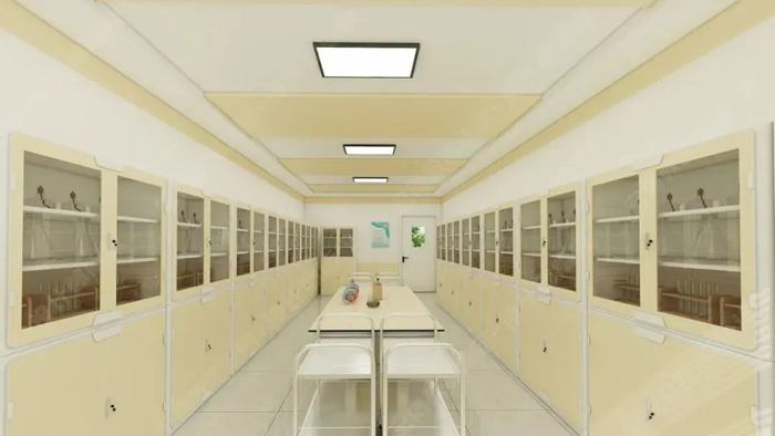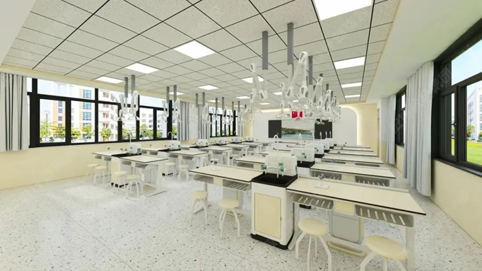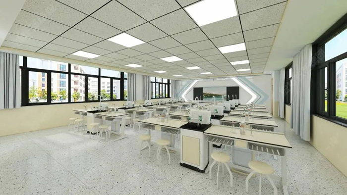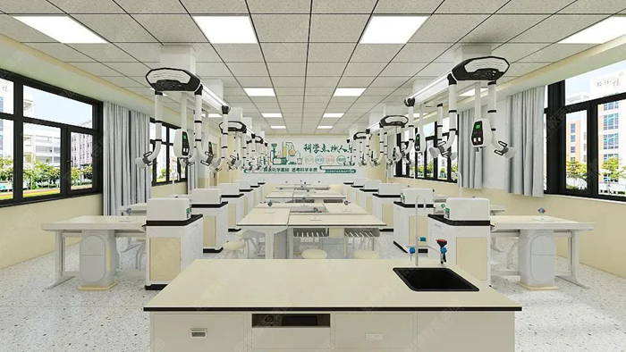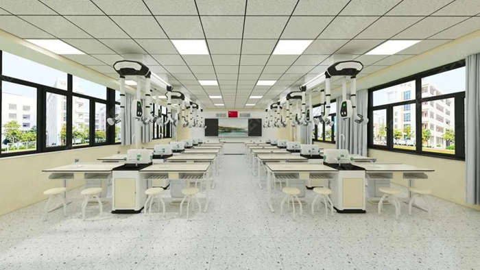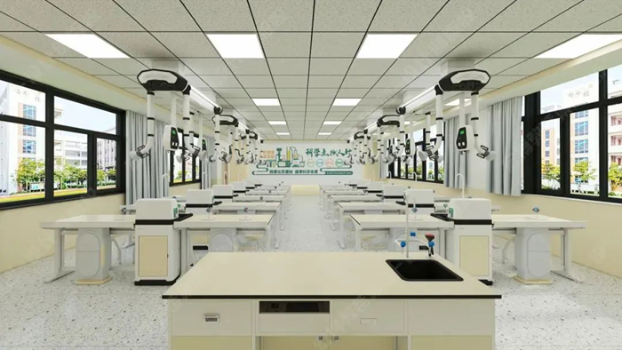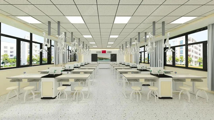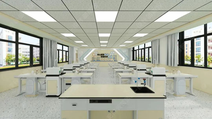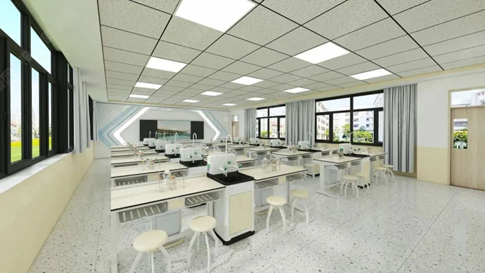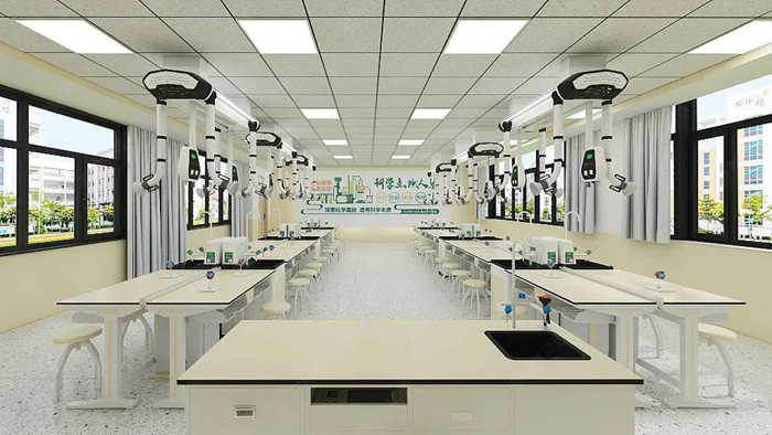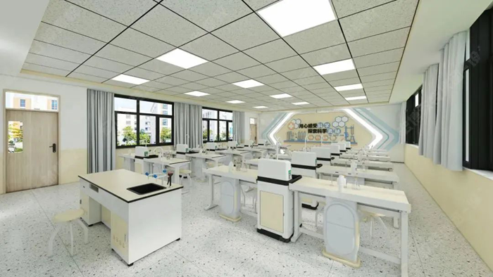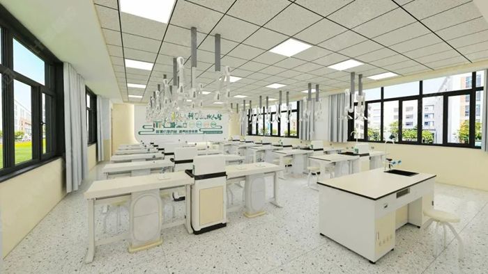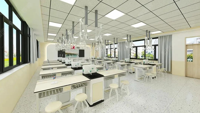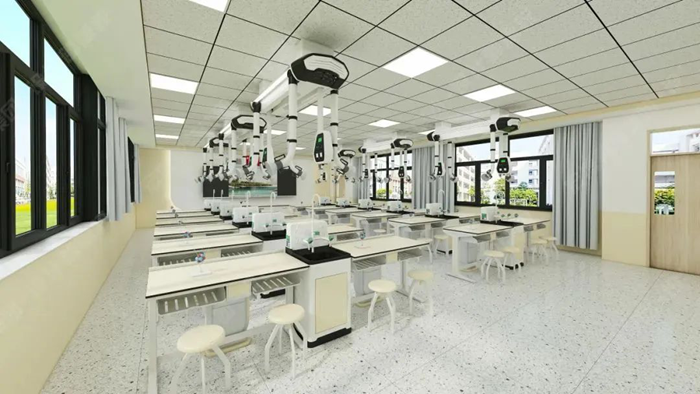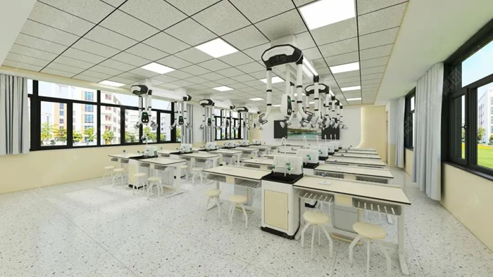 利用教室頂部空間的天然優勢,將給排水、供電、照明、通風四大功能模塊整合至頂部,打造真正意義上的“懸浮式”智能實驗室。
