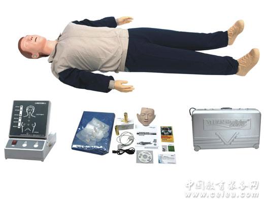 主要功能: 模擬標準氣道開放顯示。 人工手位胸外按壓顯示報警: 1. 按壓位置正確、錯誤的指示燈顯示及錯誤的報警。 2. 按壓強度正確(5~6cm區域)、錯誤(<5cm<區域)的顯示分別由指示(黃、綠、紅)指示燈移動的動態反饋顯示CPR按壓深度及錯誤的報警顯示。 人工口對口呼吸(吹氣)顯示報警: 1. 吹入的潮氣量≤500ml~600ml≤的顯示由指示(黃、綠、紅)指示燈移動的動態反饋顯示吹氣量度及錯誤的報警提示。 2. 吹入的潮氣量過快或超大,造成氣體胃部指示燈顯示及報警。 按壓與人工呼吸比:按壓與人工吹氣30:2五個循環周期CPR操作。 操作頻率:最新國際標準:100次/分。 操作方式:訓練操作。 檢查瞳孔反應:模擬瞳孔由一只散大與一只縮小的比較認識。 電源狀態:采用220V電源,經過穩壓器穩壓輸出電源6V。 材料特點: 面皮膚、勁皮膚、胸皮膚、頭發,采用進口熱塑彈性體混合膠材料,有不銹鋼模具、經注塑機高溫注壓而成,具有解剖標志準確、手感真實、膚色統一、形態逼真、外形美觀、經久耐用、消毒清洗不變形、拆裝更換方便等特點,其材料達到國外同等水平。