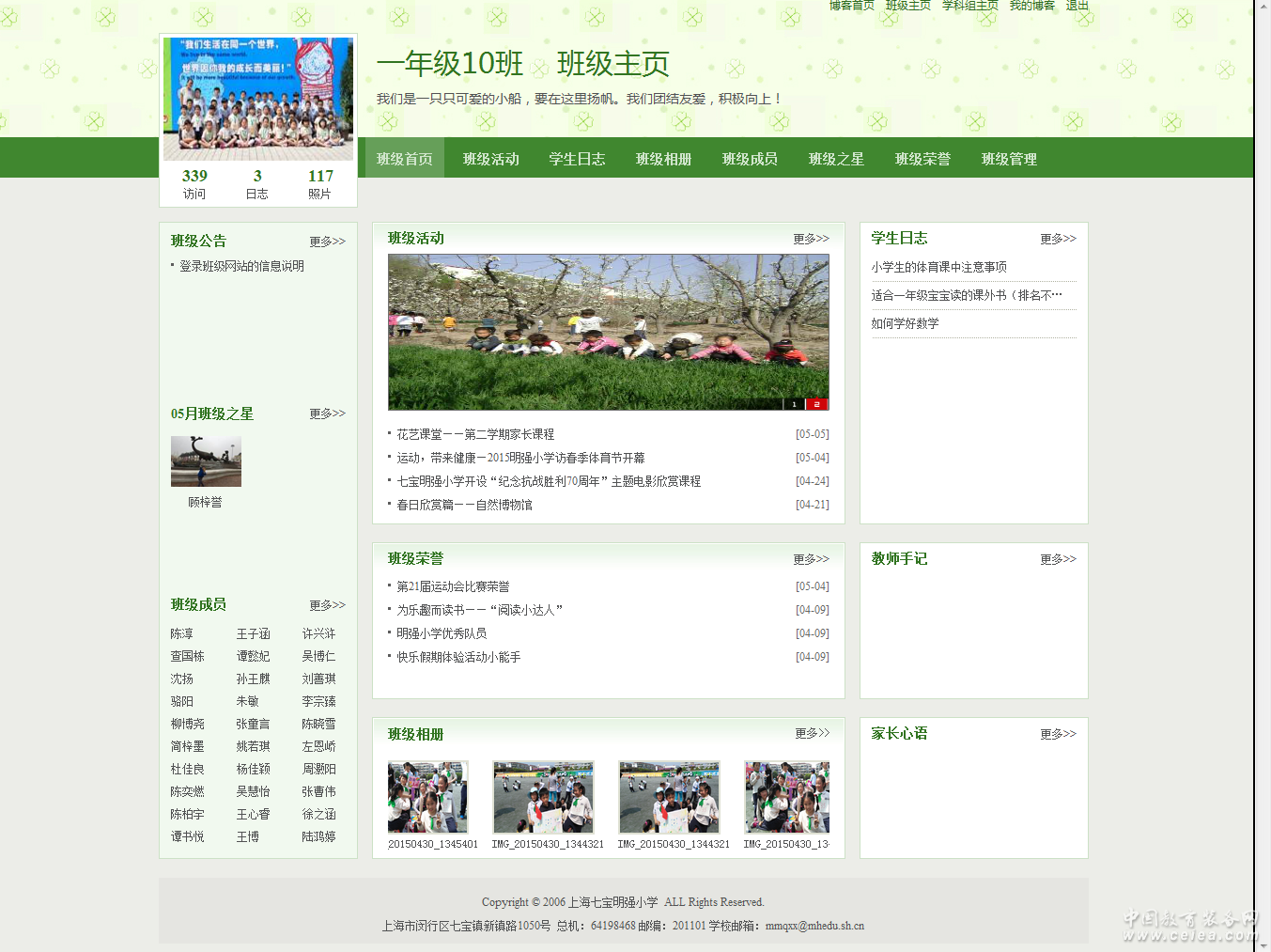 班級博客:以班級為單位的班組博客。包括班級活動、學生日志、班級相冊、班級成員、班級之星、班級榮譽等功能。班級學生來自平臺,和平臺無縫對接。月度班級之星則通過系統自動計算,涉及發布的日志、照片、說說、評論、留言等。