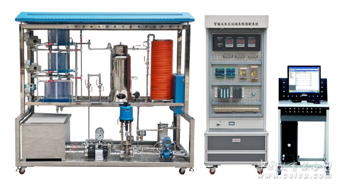 不銹鋼儲水箱;上、中、下三個串接有機玻璃圓筒型水箱;三相4.5kW電加熱鍋爐(由不銹鋼鍋爐內(nèi)膽加溫筒和封閉式外循環(huán)不銹鋼冷卻鍋爐夾套構(gòu)成)和鋁塑盤管組成。系統(tǒng)動力系統(tǒng)有兩套:一套由三相(380V交流)不銹鋼磁力驅(qū)動泵、電動調(diào)節(jié)閥、交流電磁閥、渦輪流量計等組成;另一套由日本三菱變頻器、三相不銹鋼磁力驅(qū)動泵(220V變頻)、渦輪流量計等組成。