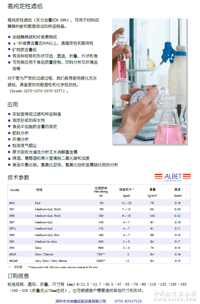 產(chǎn)品詳細(xì)介紹始創(chuàng)于1584年的哈內(nèi)姆勒,是德國最古老的紙業(yè)制造者。 在400余年的悠久歷史中,公司的創(chuàng)新實力不斷增強(qiáng),通過與全球合作伙伴的密切合作,我們可以將研究成果快速轉(zhuǎn)化為新產(chǎn)品。 哈內(nèi)姆勒生產(chǎn)世界最高質(zhì)量的過濾材料,已有超過130年的歷史。我們的競爭優(yōu)勢在于產(chǎn)品的高純度和一致性。從原材料的選擇,到生產(chǎn)流程嚴(yán)格的質(zhì)量控制,使我們可以為客戶的高重現(xiàn)性需求提供保證。 我們的產(chǎn)品在多個領(lǐng)域都得到了客戶的認(rèn)可,包括食品飲料行業(yè),制藥和化學(xué)行業(yè),農(nóng)業(yè)產(chǎn)業(yè),環(huán)境監(jiān)測與汽車工程領(lǐng)域。 ALBET LabScience是我們的一個產(chǎn)品商標(biāo),產(chǎn)品系列里包括濾紙,濾膜,濾紙筒和注射器過濾器等多種產(chǎn)品,專門提供日常實驗室應(yīng)用,產(chǎn)品多種規(guī)格大小以供選擇。 哈內(nèi)姆勒鄭重承諾: 1、100多年開發(fā)和制造濾紙的經(jīng)驗; 2、最高質(zhì)量標(biāo)準(zhǔn)-所有測試方法均標(biāo)準(zhǔn)化; 3、注重客戶和市場需求; 4、完整的批次追溯系統(tǒng),可追溯到原材料。 硬化的高純?yōu)V紙(灰分含量約0.05%)具有極高的化學(xué)和物理性能,特別適用于真空和壓力條件下過濾, 以及在酸性和堿性溶液中的使用。 由超精棉絨和纖維素制成; α-纖維素含量在95%以上,具有很高的穩(wěn)定性和耐用性; 濕強(qiáng)度高;容易刮下或洗下沉淀,無纖維釋出; 經(jīng)少量含氮樹脂硬化,沒有雜質(zhì)混入; 礦物質(zhì)含量低; 高耐腐蝕性,如硫酸和硝酸(40%,50℃),堿液(10%,20℃); 有多種規(guī)格可選,圓盤、折疊、片式和卷式。 |