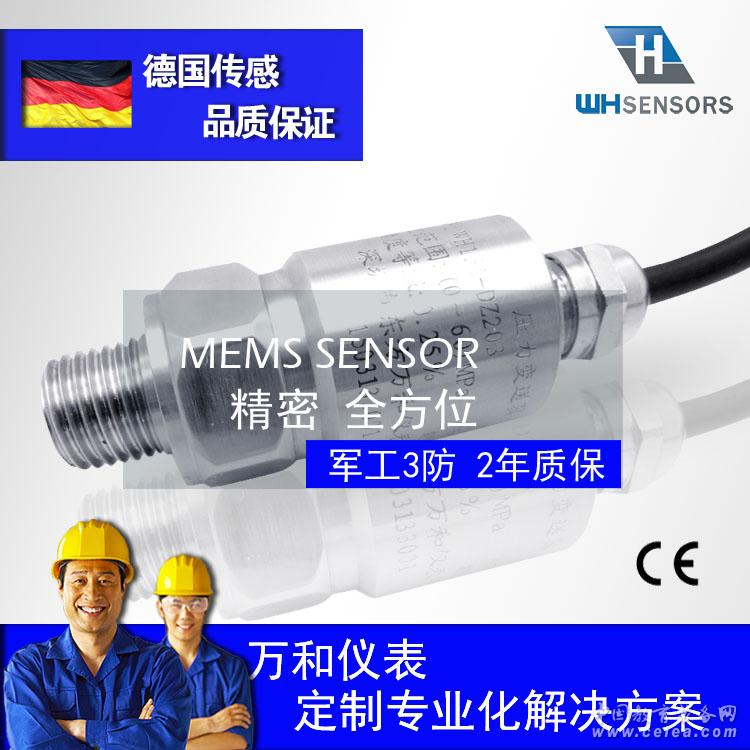 變送器由傳感器和信號處理電路組成,其中傳感器感壓面設有惠斯登電橋,當增加壓力時,電橋各橋臂電阻值發生變化。通過信號處理電路,轉換成電壓變化,最終將其轉換成標準(4~20)mA DC信號輸出.德控WH131S壓力傳感器 壓力變送器