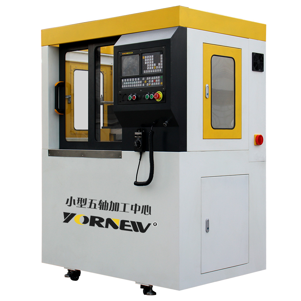 產品詳細介紹型號:VMC300 名稱:小型五軸加工中心 顯著特點 1、 使用220伏電壓,占地小,耗電少,采用全封閉安全設計結構,提高觀摩安全性的同時又保障機器的結構穩固性美觀; 2、高強度樹脂砂鑄件,功能加大,5軸聯動,配置YORNEW M5五軸聯動數控系統,適用國際通用程序,故障自動檢測報警功能、斷電記憶功能; 3、配置精密高速主軸單100-24000rpm,變頻G指令控制主軸轉速,主軸電機功率1.5Kw; 4、配置8工位快速換刀系統,換刀時間4S,使用氣壓0.6 Mpa,可極大提高復雜產品的加工效率及加工精度; 5、采用C3級精密雙螺母滾珠絲桿,經中周波熱處理及精密研磨,各軸施以預拉減少熱變形,定位及重覆精度高; 6、XYZ軸采用伺服電機,最快移動速度10000mm/min; 7、機器采用雷尼紹激光干涉儀精確檢測,確保各軸精度背隙,保證定位精度; 8、帶工冷冷卻系統,配有5軸電子手脈三檔可調極大地方便操作和對刀,機器配置有自動間歇潤滑系統; 9、配有移動腳輪和水平腳墊,放便設備的移動與定位; 10、加工材料廣泛,可以加工鋼件、銅件、鋁件、塑料件等。