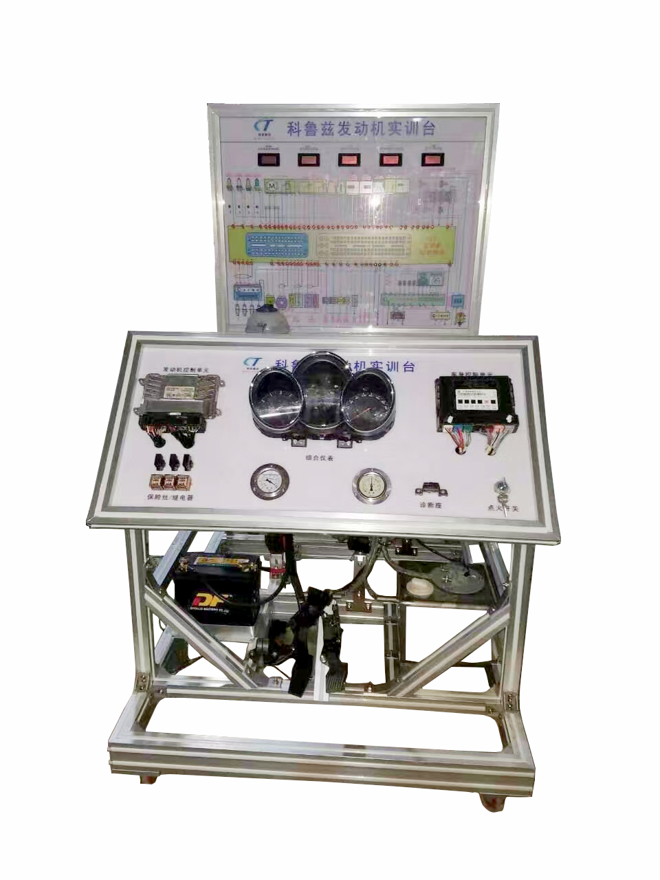 產品詳細介紹設備概述: 本產品適用于大專院校、職業學校、汽車修理專業教學之用,通過本產品的演示或實訓實操實習,能讓學員較快地掌握發動機的構造與控制原理,加快學員對發動機的認識,屬于汽車學校教學理想的輔助理解設備。 功能特點: 1、裝備采用全新科魯茲汽車發動機器件組成,包括:發動機總成、起動機總成、發電機總成、電控單元(ECU)、進/排氣系統、所有傳感器、執行器、組合儀表、點火開關等發動機正常工作器件。適合中高等汽車院校與培訓機構對學員進行發動機的教學需要。 2、裝備發動機系統結構完整,能夠按照原車操作方式,動態演示發動機起動、怠速、加速、減速等工作過程;采用整體式臺架設計,實訓臺架由四大部分組成: 一、面板原理電路檢測顯示圖: 1)配對應科魯茲發動機電路原理圖,圖上設4MM外接式檢測端子,不用拔拉傳感器、執行器插頭或穿刺導線,通過外接式檢測端子,利用萬用表等專用儀器儀表進行測量,便能開展包括電阻、電壓、頻率、導通性測試等實踐性教學實訓。大大延長了臺架使用壽命,方便教學與對學員進行實訓考核需要。 2)增設顯示功能:液晶數字表,實時顯示:1空氣流量計信號、2進氣溫度信號、3冷卻液溫度傳感器信號、4節氣門傳感器信號、5加速踏板傳感器信號、6曲軸位置傳感器信號、7凸輪軸傳感器信號等各種信號參數變化情況,利于教學與故障排除需要。 3)高亮LED燈,實時顯示點火/噴油占空比,可動態觀察每個點火/噴油工作情況,利于計算占空比與形象教學需要。 二、控制/儀表顯示臺: 1)組合儀表,實時顯示發動機轉速、水溫、燃油量、電控故障燈、機油壓力過低故障燈等發動機控制系統信號參數變化,方便形象教學與故障設置排除需要。 2)增設燃油壓力表、進氣真空壓力表,可實時觀察燃油/進氣量在不同轉速下的變化情況,利與教學與故障排除需要。 3)裝OBDII診斷座,可連接專用或通用解碼器進行編碼查詢,防盜匹配、讀故障碼、數據流、波形分析,監控運行數據變化,開展傳感器、執行器與電控系統的性能、功能測試與分析。 三、發動機動態演示區: 1)采用5MM厚、50MM優質鑄鐵方通,經特殊工藝焊接成型,根據原車發動機固定方式,合理擺放發動機。臺架整體結構合理,樣式新穎,美觀大方。 2)發動機組成結構: 發動機總成,包括(所有傳感器、執行器、供油系統、冷卻系統、充電系統、起動系統、進/排氣系統、油門踏板。組合儀表、電控ECU 、OBD診斷座、蓄電池、點火開關等。 3)發動機系統完整,運行可靠,能進行發動機起動、怠速、加速、減速等實驗模擬。適合于中高職業院校與汽車培訓機構對學員進行汽車發動機教學與實訓實操考核需要。 四、安全防護措施區: 1)設置蓄電池負極電源總開關,可隨時打開/關閉電源。不用拆卸蓄電池電源接頭,更人性化設計,方便使用。 2)前水箱危險保護網,規格為:750*50*500(長*寬*高)mm;兩邊發動機演示區防護網,規格為:850*50*400(長*寬*高)mm; 前部、發動機演示區均采用半徑為35mm寬的圓形不銹鋼護手。樣式新穎,確保教學使用的安全可靠。 3、裝備采用手動設置設置系統;故障點由教師在故障設置箱內進行設置,可以設置單一故障,也可以設置復合故障;學生通過分析電路的故障現象,判斷故障點的位置,然后在排故面板上選擇需要排除的故障點。(故障電路原理為觸點單刀開關,只能打開或關閉控制)。適用于對學員進行不同等級實訓實操考核需要。 五、裝置整體外形: 1)整體式實訓臺架,發動機按照原車位置擺放、固定。四周分別設1.2MM厚護網,半徑:20MM 1.0MM 厚不銹鋼護欄。 2)面板電路原理圖制造工藝先進,采用4MM厚,高強度復合鋁塑板,激光彩色噴描技術,高強度保護膜制作而成。色彩鮮艷,使用壽命長! 3)面板框采用1.5MM厚優質鑄鐵經特殊工藝沖壓成型;面板原理圖四周采用1.2MM厚鋁合金包邊; 低架采用2.0MM后40MM方鐵焊制而成。 面板框、低架為嵌入可拆式結構,無縫焊接。 4)框架表面采用:2K WU YANG PAINT 金屬漆高溫烘烤噴涂而成,色彩鮮明,壽命長! 5)輪腳結構:采用半徑:50MM 厚50MM萬向帶鎖尼龍輪腳裝置,可固定/行移動式教學。 實訓項目: 1、汽車發動機整體構造認識與教學。 2、汽車發電機的認識與教學。 3、汽車起動機的認識與教學。 4、發動機起動、怠速、加速、減速等實驗模擬。 5、發動機各傳感器信號檢測、數據讀取等實驗。 6、發動機數據流讀取、防盜系統匹配等實驗。 7、發動機故障讀取、故障排除、波形采集等實驗。 8、汽車發動機電控系統執行元件診斷實驗。 9、汽車組合儀表的認識與教學。 10、汽車傳感器與執行器的認識與教學。 11、汽車供油系統的認識與教學。 12.、汽車冷卻系統的認識與教學。 13、汽車充電系統的認識與教學。 14、汽車起動系統的認識與教學。 15、汽車進/排氣系統的認識與教學。 16、汽車油門踏板的認識與教學。 17、汽車點火開關的認識與教學。 18、發動機電控系統常見故障診斷實訓實操。 設備配置: 科魯茲發動機總成 1個 電控單元ECU 1個 組合儀表 1個 發動機線束 1個 電子油門踏板 1個 12V蓄電池 1個 空氣濾清總成 1個 活性碳罐 1個 10L不銹鋼燃油箱 1個 真空表 1個 燃油壓力表 1個 消聲器 1個 三元催化 1個 冷卻水箱 1個 加水壺 1個 液晶數字電壓表 7個 帶鎖萬向輪腳 4個 點火鑰匙/開關 1個 面板原理圖 1塊 產品說明書 1
