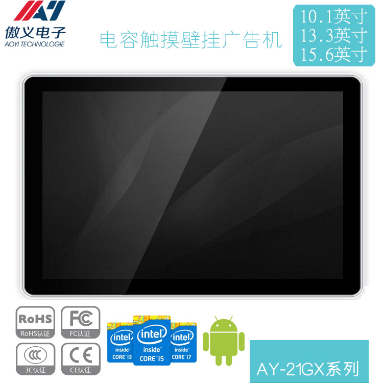 產品詳細介紹AY-21GX系列電容觸摸一體機外殼采用銀色鋁合金材料外框,鍍鋅防銹處理,整機一體化設計,兼顧美觀與耐用;多點電容觸摸顯示系統,采用LG/三星/AU等進口A規品質LED液晶模組,壽命長性能穩定,1920*1080高清分辨率;Android系統/windows系統,標配USB / 網口 / HDMI / VGA / WiFi天線 等常規接口。10.1/13.3/15.6英寸