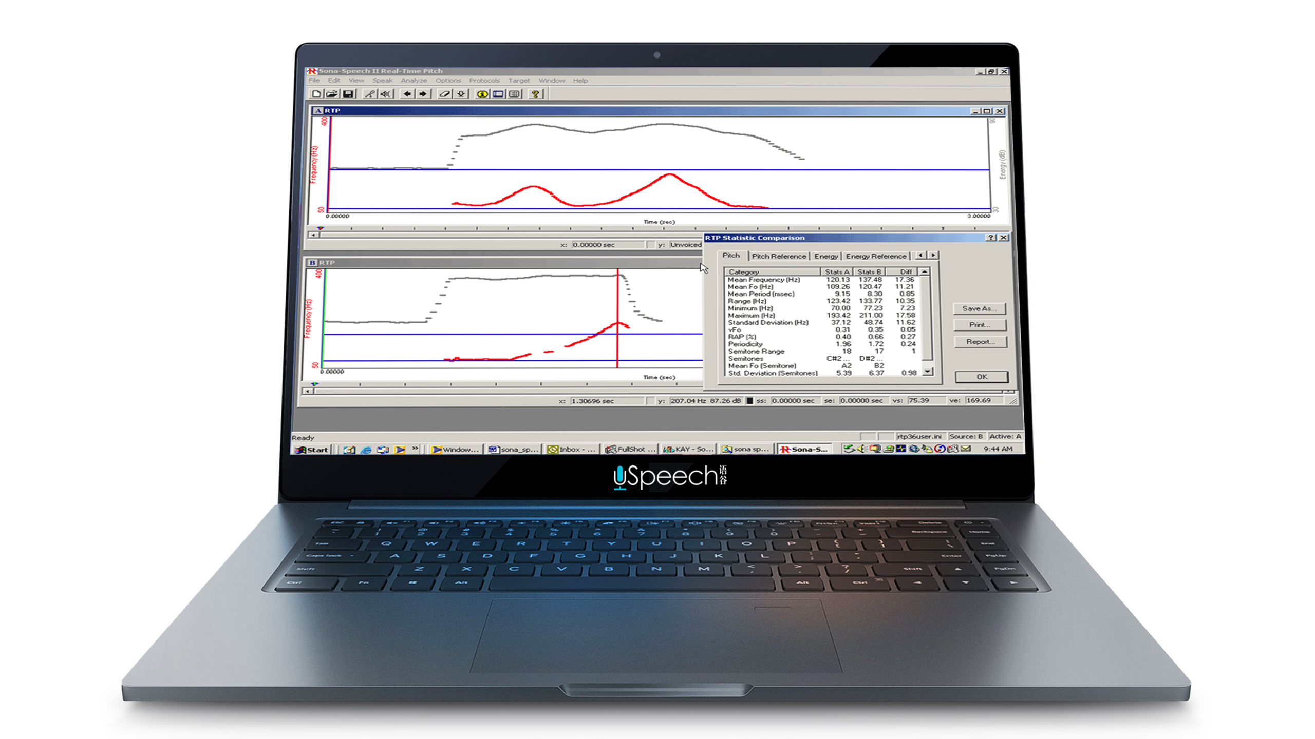 實時音高 Sona-Speech 的一個關鍵模塊是實時音高,在運動言語過程中的重音、計時、語調模式以及目標音高和/或振幅值可以被客戶看到。分屏允許將目標發聲與客戶模仿關鍵參數(如振幅水平、語音速率、音高范圍等)的嘗試進行比較。然后可以視覺和定量地比較目標和客戶的嘗試;音頻回放允許臨床醫生和客戶精確地傾聽重要的語音/嗓音行為。