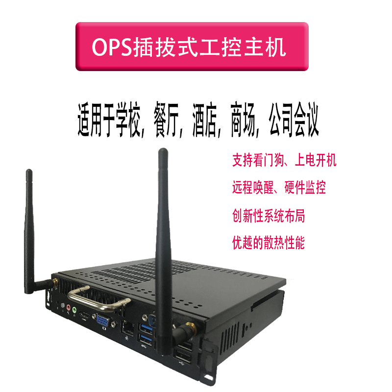 產品詳細介紹本產品是藍域創想一款超薄的OPS 整機,基于 Intel 第5代Mobile U系列超低功耗平臺的 CPU,支持 WinXP、Win7、Win8、Win10 和 Linux 等操作系統; 整機采用合金材質并做陽極黑色氧化,外型小巧、超薄、結構簡單,I/O和擴展接口豐富,且配備OPS插槽,是一款為電子教育白板和會議白板量身打造的產品。 ●產品規格 主要規格 處理器 Intel 6/7 th Generation Core™ i3/i5/i7 LGA1151 內存 1* SO-DIMM 16GB DDR4內存插槽 存儲 1*Msata SSD,1*SATA標準接口 Wifi 1*WIFI Module support 802.11b/g/n+2.5db雙增益天線 視頻 Graphics Intel HD Graphics 接口 1 個 HDMI Port(最大支持分辨率: 4096x2160) 1 個 DP Port(最大支持分辨率:4096x2160) OPS 擴展槽,1 路 HDMI 信號輸出 網絡 1 個 10/100/1000Mbps 網絡接口,支持網絡喚醒 音頻 Intel HDMI HD Audio Realtek 集成6聲道音效ALC662聲卡芯片 1 × LINE-OUT & MIC-IN USB 速率 USB3.0 5Gb/s 和 USB2.0 480Mb/s (理論值) 接口和插針 主機前置4個USB3.0 Port, 2 個USB2.0 Port OPS 擴展槽,有 2 個 USB3.0 , 2 個 USB 2.0 電源接口 DC-Jack和OPS子卡供電接口,12-19v DC 電壓輸入 尺寸規格 195*180*42mm(可選30mm/40mm厚度機殼) 操作系統 Windows WinXP/Win7/Win8/Win10 其它 Unix/Linux 工作環境 溫度 -10~50℃ 濕度 0~85%RH