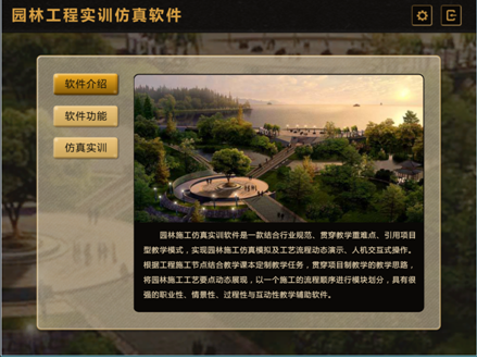 園林施工仿真實(shí)訓(xùn)軟件是一款結(jié)合行業(yè)規(guī)范、貫穿教學(xué)重難點(diǎn)、引用項(xiàng)目型教學(xué)模式,實(shí)現(xiàn)園林施工仿真模擬及工藝流程動(dòng)態(tài)演示、人機(jī)交互式操作。根據(jù)工程施工節(jié)點(diǎn)結(jié)合教學(xué)課本定制教學(xué)任務(wù),貫穿項(xiàng)目制教學(xué)的教學(xué)思路,將園林施工工藝要點(diǎn)動(dòng)態(tài)展現(xiàn),以一個(gè)施工的流程順序進(jìn)行模塊劃分,具有很強(qiáng)的職業(yè)性、情景性、過程性與互動(dòng)性教學(xué)輔助軟件。