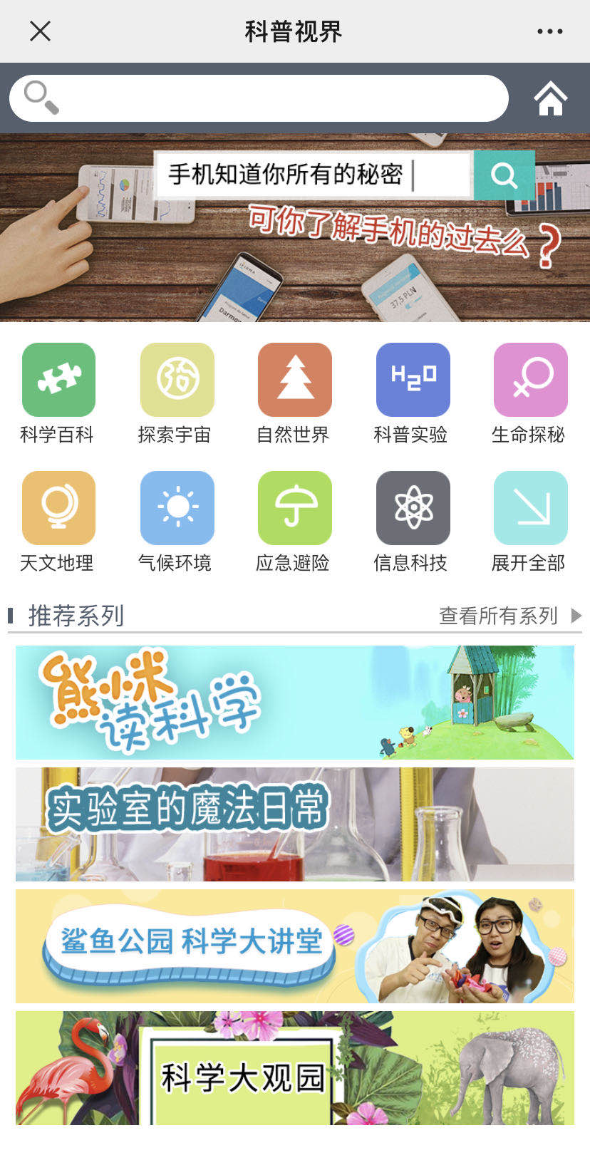 我們的微信移動端包含的產(chǎn)品主要有:科普視界、少兒數(shù)字圖書館、學(xué)前教育知識庫、中小學(xué)數(shù)字圖書館。