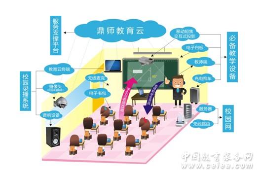 鼎師智慧教室解決方案可以將鼎師電子書包、電子白板和投影設備實現無縫對接,加強了課堂的教學互動,在全學科教育資源服務基礎上 可實現同步教學和自主學習功能。