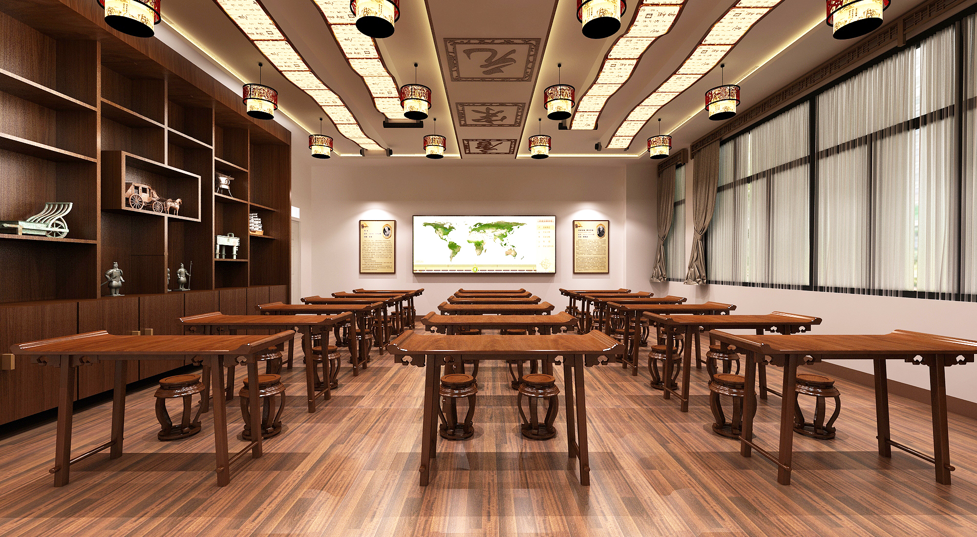 羿飛數字化歷史專用教室匠心獨運,布局上主次分明,井然有序,裝修上古樸典雅,氣勢恢宏。置身其中,仿佛穿越了歷史長河。那燦爛輝煌的中華文明、光彩奪目的民族文化,歷久彌新的文化氣息撲面而來,為學生們營造了一種穿梭歷史時空的學習氛圍,從而更好地理解歷史的深邃與厚重。