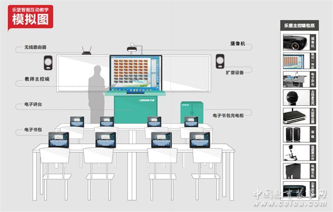 產(chǎn)品詳細介紹    樂望智能互動教學系統(tǒng)主要由教師端軟件和學生端軟件組成,主要應用運行在互動教學課堂上,如上圖,學生端軟件安裝在移動終端設備電子書包(android \windows)上運行,教師端軟件安裝在觸控一體機機上運行。學生端軟件通過Wi-Fi與教師端主機連接,教師端主機同時連接攝像機、音箱設備、實物展臺等多媒體設備,通過對教師端軟件和學生端軟件的互動功能設計,并結合多媒體現(xiàn)有技術實現(xiàn)課堂中的實際教學。例如,教師可以使用師生同步功能將觸控一體機上顯示的內(nèi)容同步到學生端設備上顯示,學生不再擔心因座位離顯示屏幕遠而看不見,也可以使用截圖、搶答等功能使學生積極主動參與課堂學習、活躍課堂氣氛。